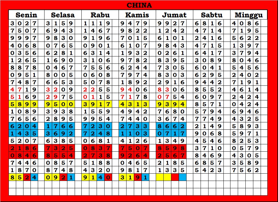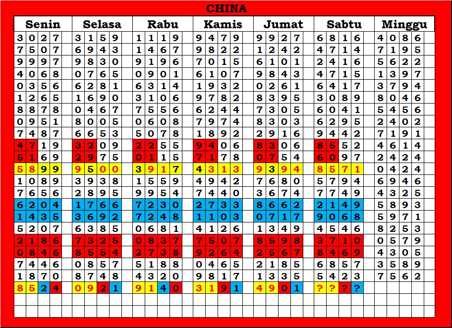 MASTER CHINAPOOLS Jumat, 27-02-2026 Merupakan Prediksi Otomatis yang menggabungkan Metode Kalender Togel Dengan Rumus-rumus kontrol yang sudah terbukti keakuratanya.Gunakan Aplikasi Rekap untuk mendapatkan LN TOP. Harap Maklum Jika kadang meleset MASTER CHINAPOOLS kita. Jadikan ini sebagai perbandingan saja dan tetap UPS