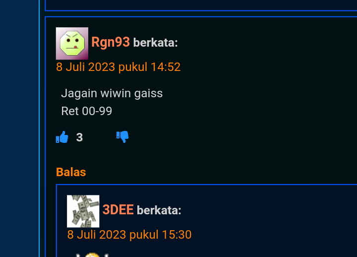 semua postingan komentar SARA, politik, saling menghujat serta saling merendahkan antara prediktor satu dengan yang lainnya jika kami lagi OL mohon maaf langsung kami hapus dan jika telah diperingatkan masih mengulang kami lock datanya