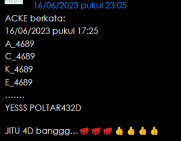 semua postingan komentar SARA, politik, saling menghujat serta saling merendahkan antara prediktor satu dengan yang lainnya jika kami lagi OL mohon maaf langsung kami hapus dan jika telah diperingatkan masih mengulang kami lock datanya