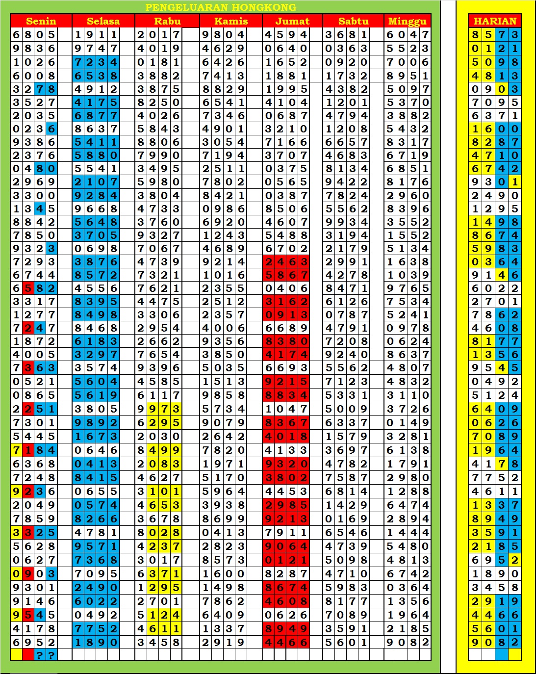 | TABEL DATA HK 6D VERSI HARIAN |