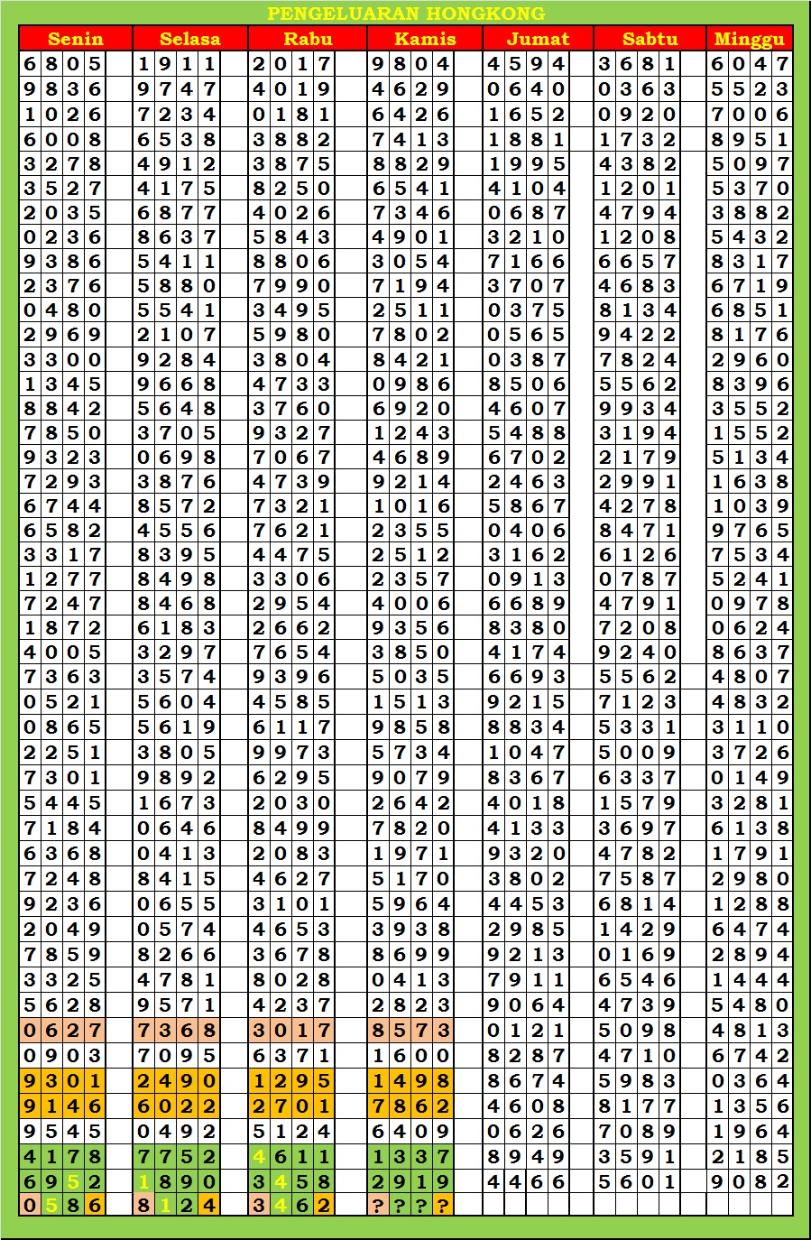 | TABEL DATA HKG VERSI 6D TAHUN 2010 HINGGA SEKARANG |