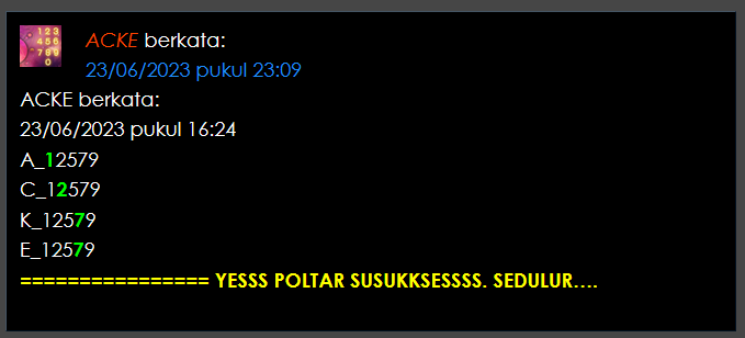 semua postingan komentar SARA, politik, saling menghujat serta saling merendahkan antara prediktor satu dengan yang lainnya jika kami lagi OL mohon maaf langsung kami hapus dan jika telah diperingatkan masih mengulang kami lock datanya