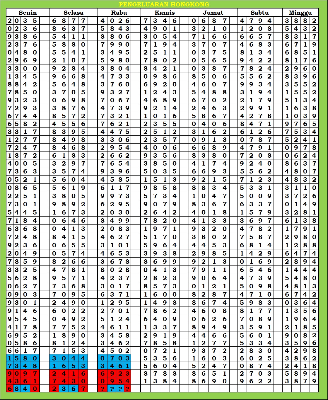 | TABEL FORMULA DATA HONGKONG |
