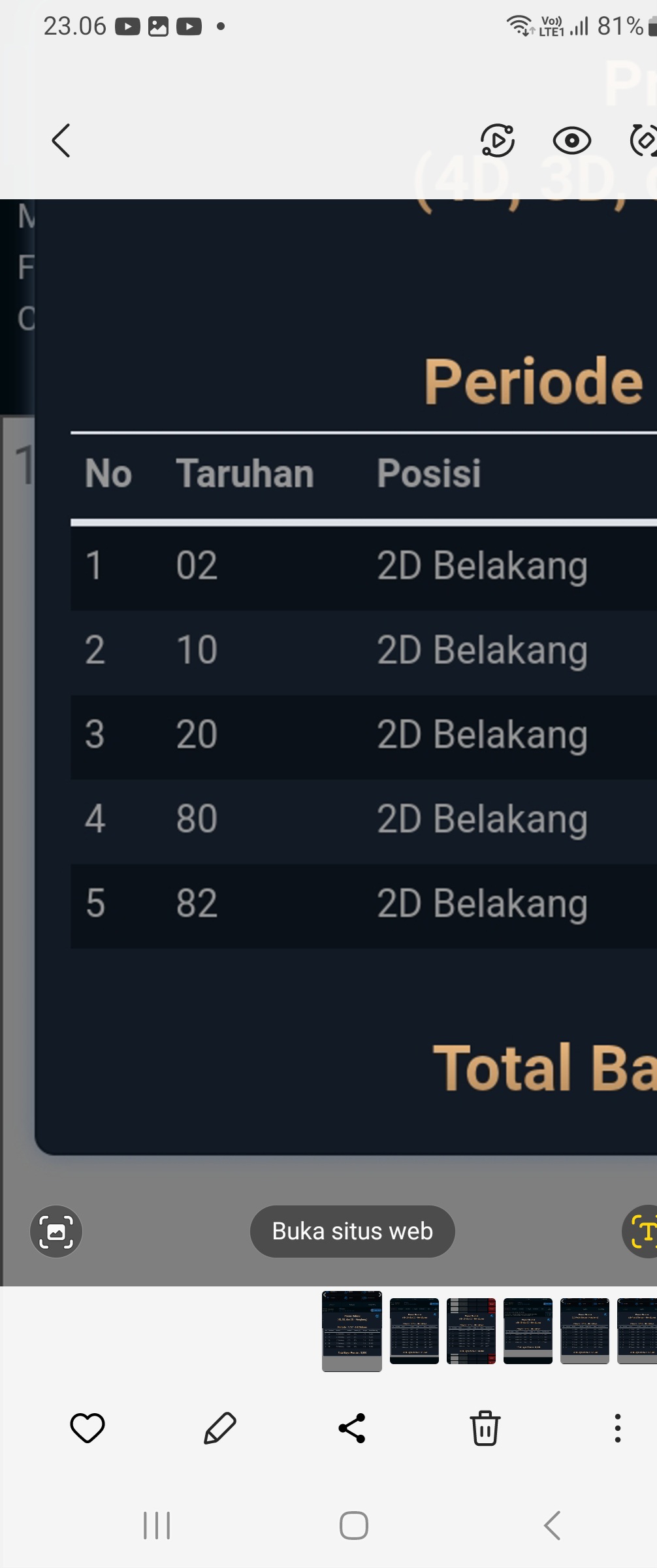 Prediksi Ini Berubah secara otomatis sesuai hari dan result pasaran masing-masing. Untuk melihat prediksi sebelumnya klik tombol nomor hitam diatas