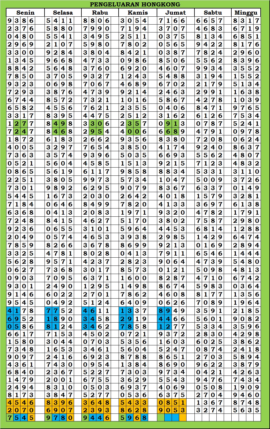 | TABEL DATA HKG VERSI 6D TAHUN 2010 HINGGA SEKARANG |