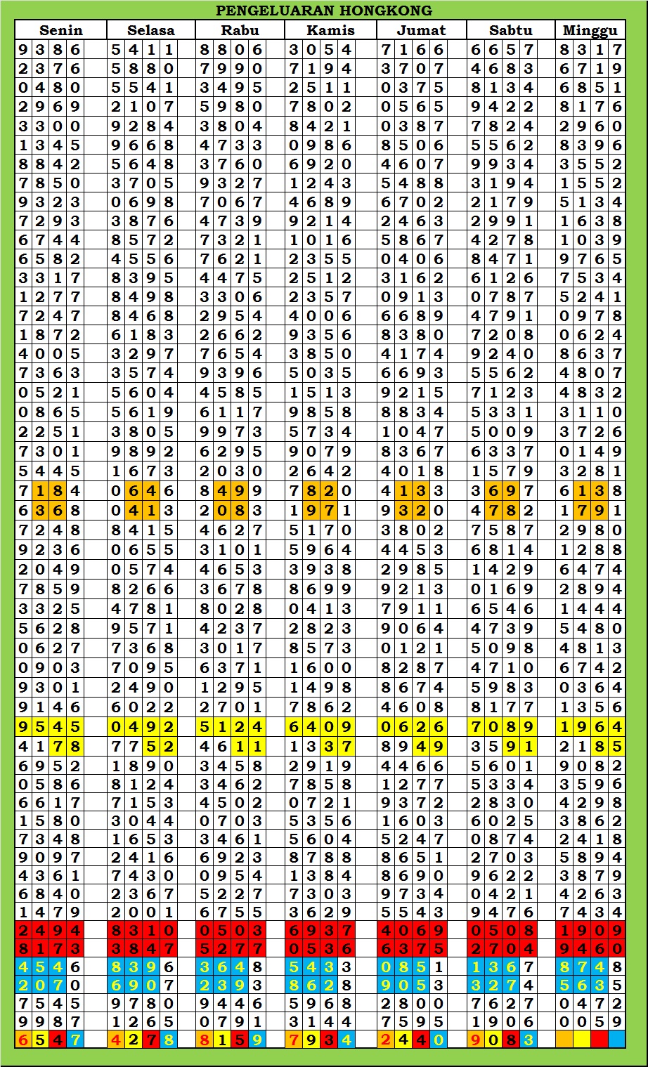 | TABEL DATA HKG VERSI 6D TAHUN 2010 HINGGA SEKARANG |