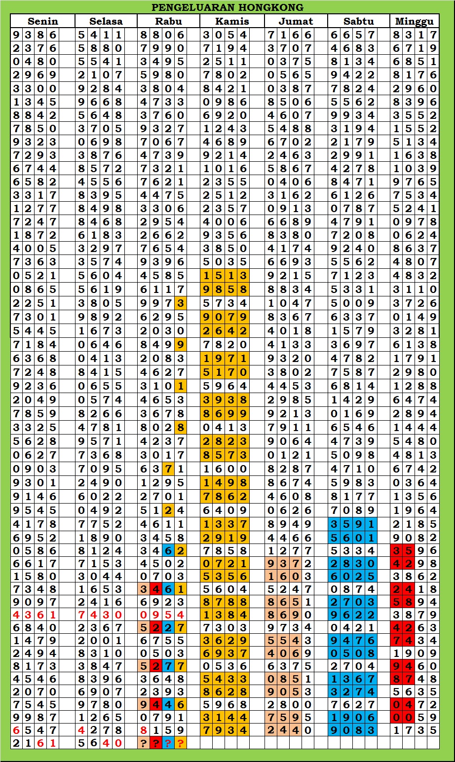 MASTER HONGKONG Kamis, 05-03-2026 Merupakan Prediksi Otomatis yang menggabungkan Metode Kalender Togel Dengan Rumus-rumus kontrol yang sudah terbukti keakuratanya.Gunakan Aplikasi Rekap untuk mendapatkan LN TOP. Harap Maklum Jika kadang meleset MASTER HONGKONG kita. Jadikan ini sebagai perbandingan saja dan tetap UPS