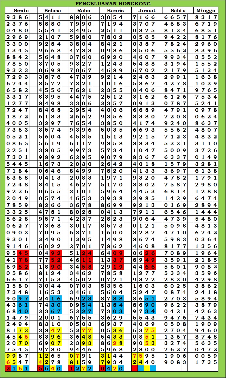 | TABEL DATA HKG VERSI 6D TAHUN 2010 HINGGA SEKARANG |