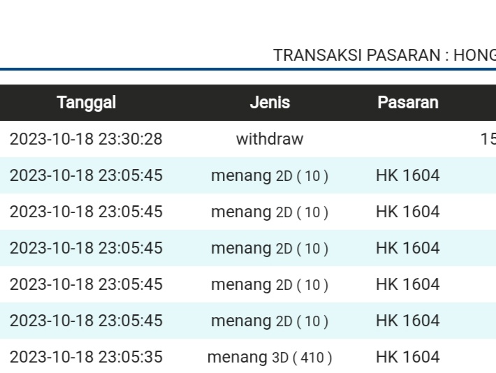| TABEL DATA HKG VERSI 6D TAHUN 2010 HINGGA SEKARANG |