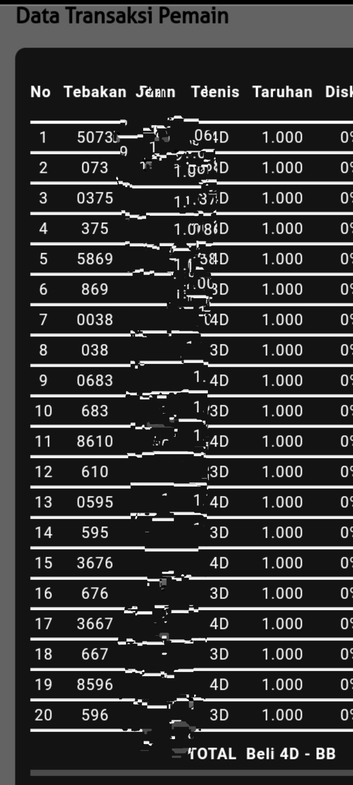 | TABEL DATA HK 6D VERSI HARIAN |