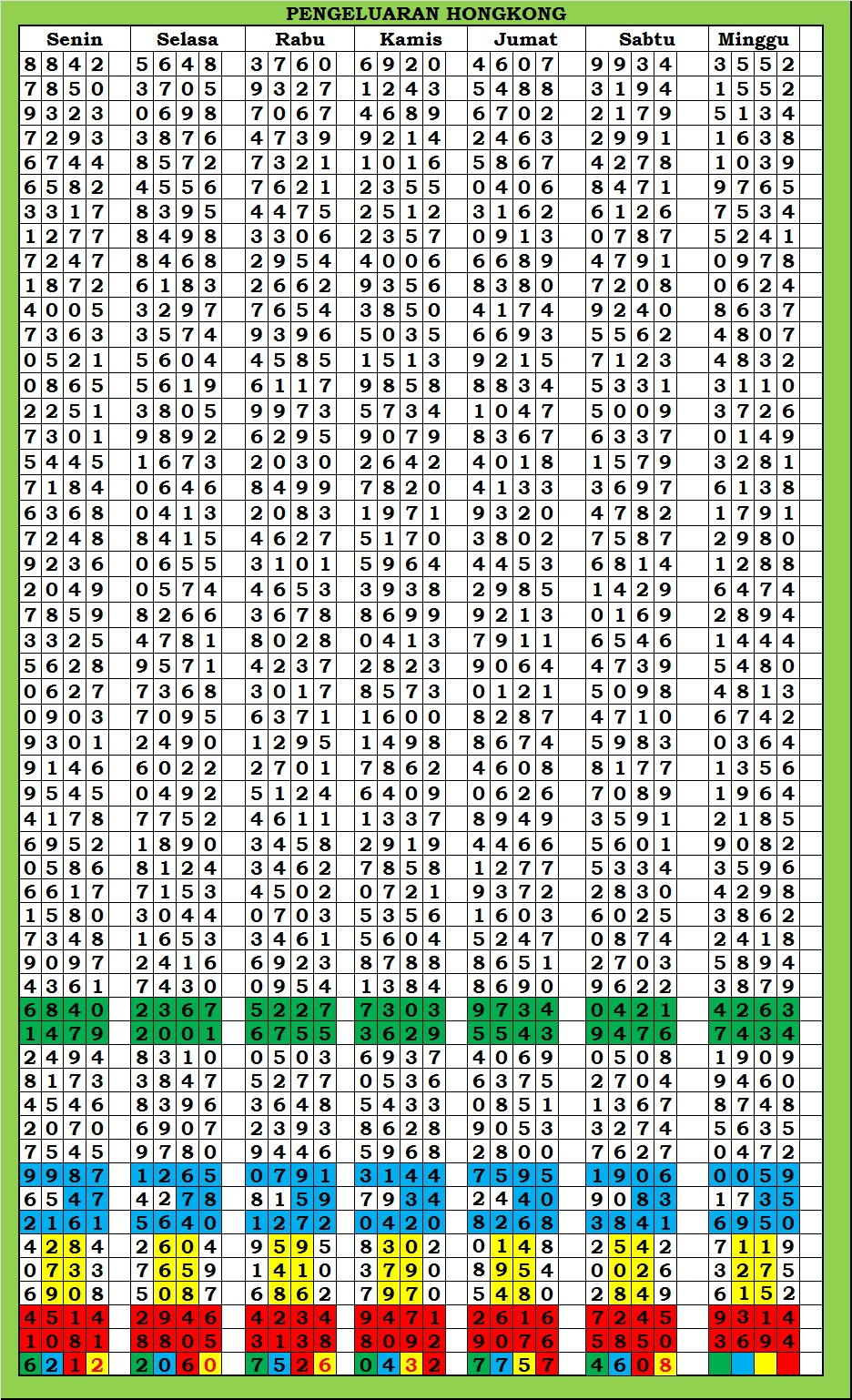 | TABEL DATA HKG VERSI 6D TAHUN 2010 HINGGA SEKARANG |