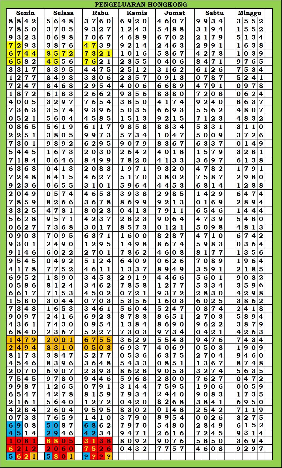 | TABEL DATA HKG VERSI 6D TAHUN 2010 HINGGA SEKARANG |