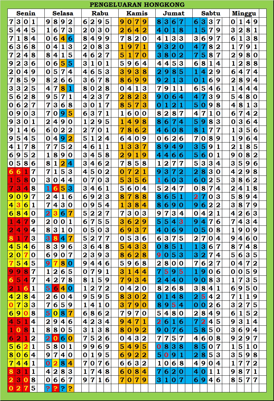 MASTER HONGKONG Rabu, 04-03-2026 Merupakan Prediksi Otomatis yang menggabungkan Metode Kalender Togel Dengan Rumus-rumus kontrol yang sudah terbukti keakuratanya.Gunakan Aplikasi Rekap untuk mendapatkan LN TOP. Harap Maklum Jika kadang meleset MASTER HONGKONG kita. Jadikan ini sebagai perbandingan saja dan tetap UPS