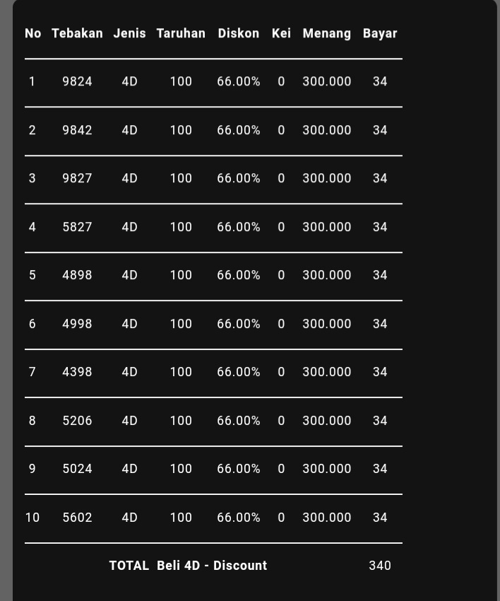 semua postingan komentar SARA, politik, saling menghujat serta saling merendahkan antara prediktor satu dengan yang lainnya jika kami lagi OL mohon maaf langsung kami hapus dan jika telah diperingatkan masih mengulang kami lock datanya