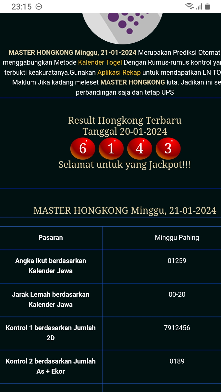 MASTER HONGKONG Selasa, 03-03-2026 Merupakan Prediksi Otomatis yang menggabungkan Metode Kalender Togel Dengan Rumus-rumus kontrol yang sudah terbukti keakuratanya.Gunakan Aplikasi Rekap untuk mendapatkan LN TOP. Harap Maklum Jika kadang meleset MASTER HONGKONG kita. Jadikan ini sebagai perbandingan saja dan tetap UPS