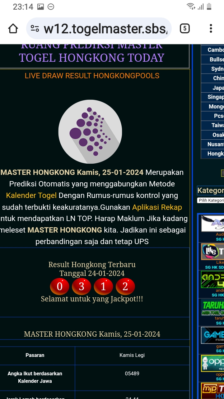 MASTER HONGKONG Selasa, 03-03-2026 Merupakan Prediksi Otomatis yang menggabungkan Metode Kalender Togel Dengan Rumus-rumus kontrol yang sudah terbukti keakuratanya.Gunakan Aplikasi Rekap untuk mendapatkan LN TOP. Harap Maklum Jika kadang meleset MASTER HONGKONG kita. Jadikan ini sebagai perbandingan saja dan tetap UPS