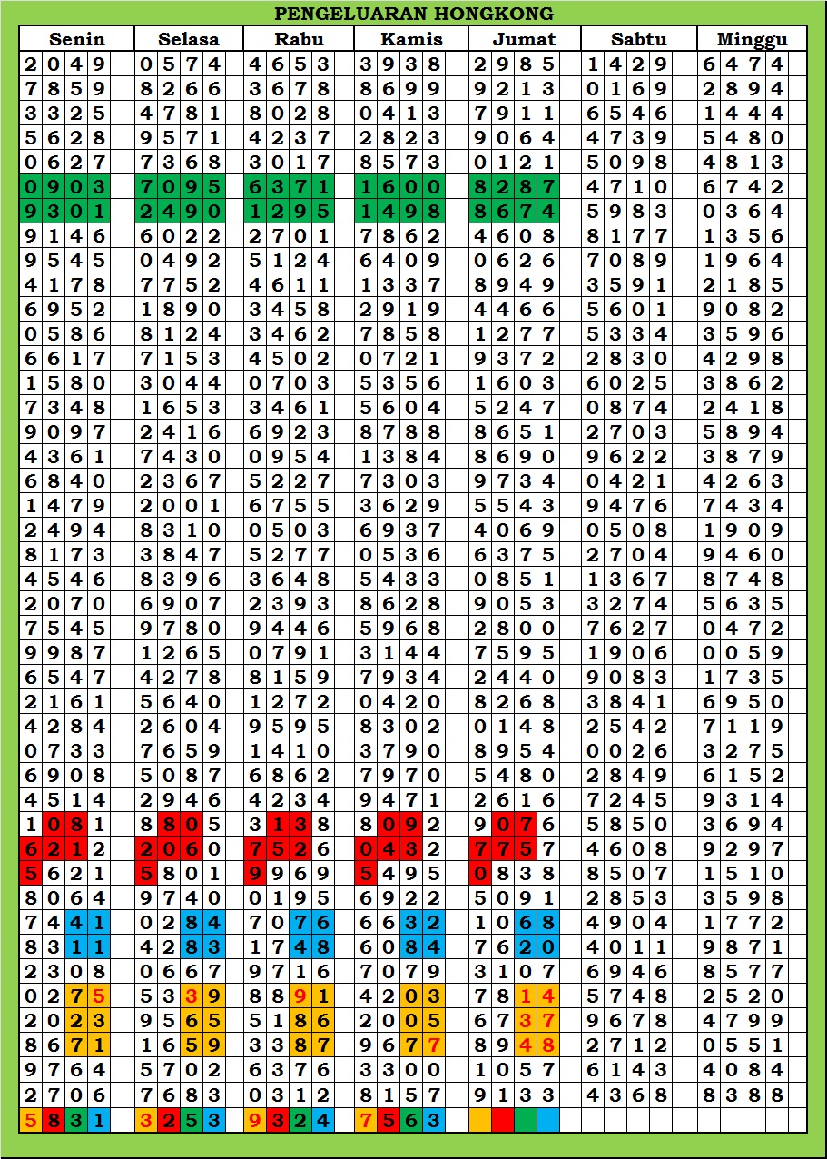 MASTER HONGKONG Selasa, 03-03-2026 Merupakan Prediksi Otomatis yang menggabungkan Metode Kalender Togel Dengan Rumus-rumus kontrol yang sudah terbukti keakuratanya.Gunakan Aplikasi Rekap untuk mendapatkan LN TOP. Harap Maklum Jika kadang meleset MASTER HONGKONG kita. Jadikan ini sebagai perbandingan saja dan tetap UPS