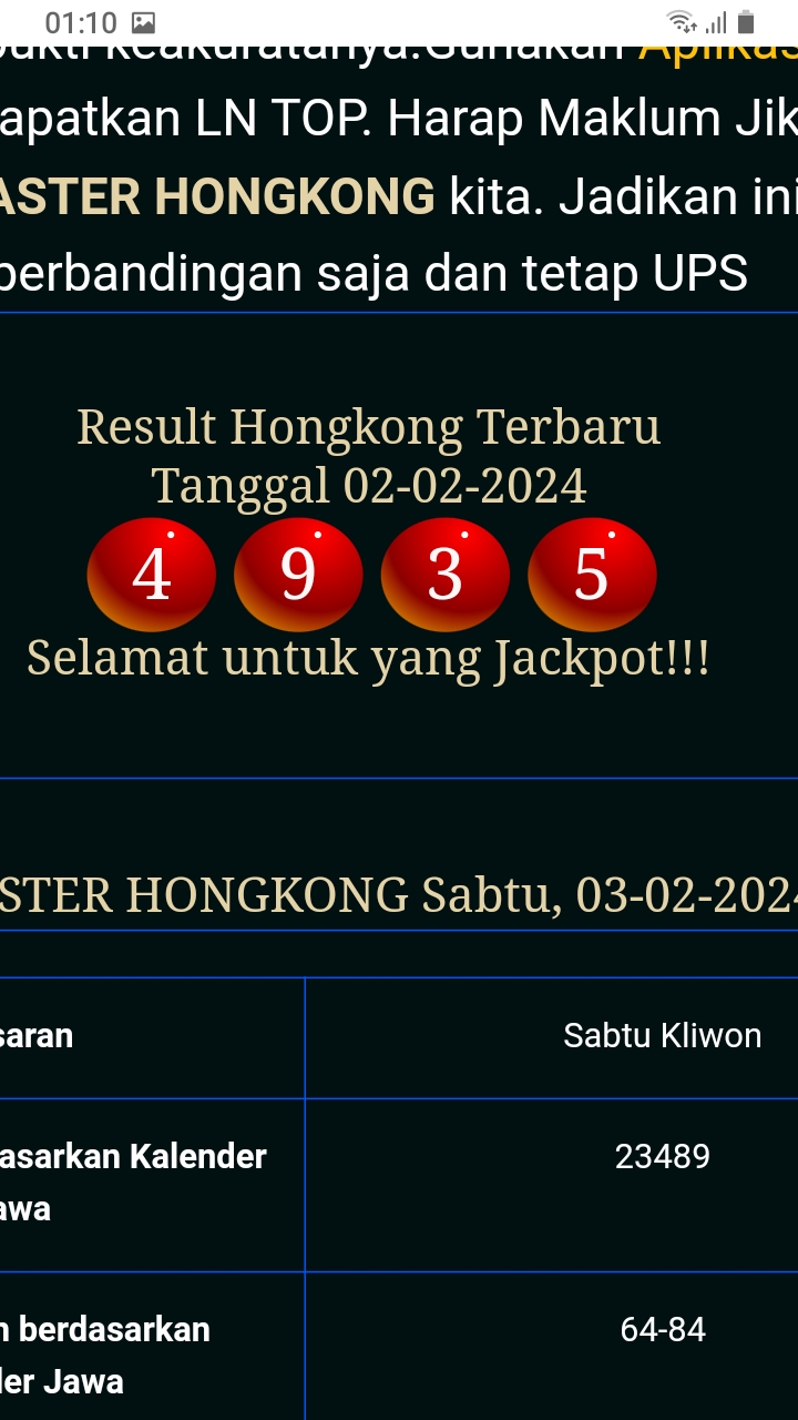 MASTER HONGKONG Selasa, 03-03-2026 Merupakan Prediksi Otomatis yang menggabungkan Metode Kalender Togel Dengan Rumus-rumus kontrol yang sudah terbukti keakuratanya.Gunakan Aplikasi Rekap untuk mendapatkan LN TOP. Harap Maklum Jika kadang meleset MASTER HONGKONG kita. Jadikan ini sebagai perbandingan saja dan tetap UPS
