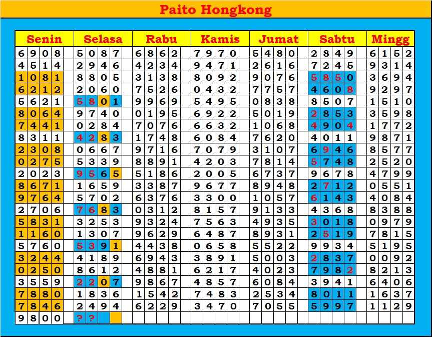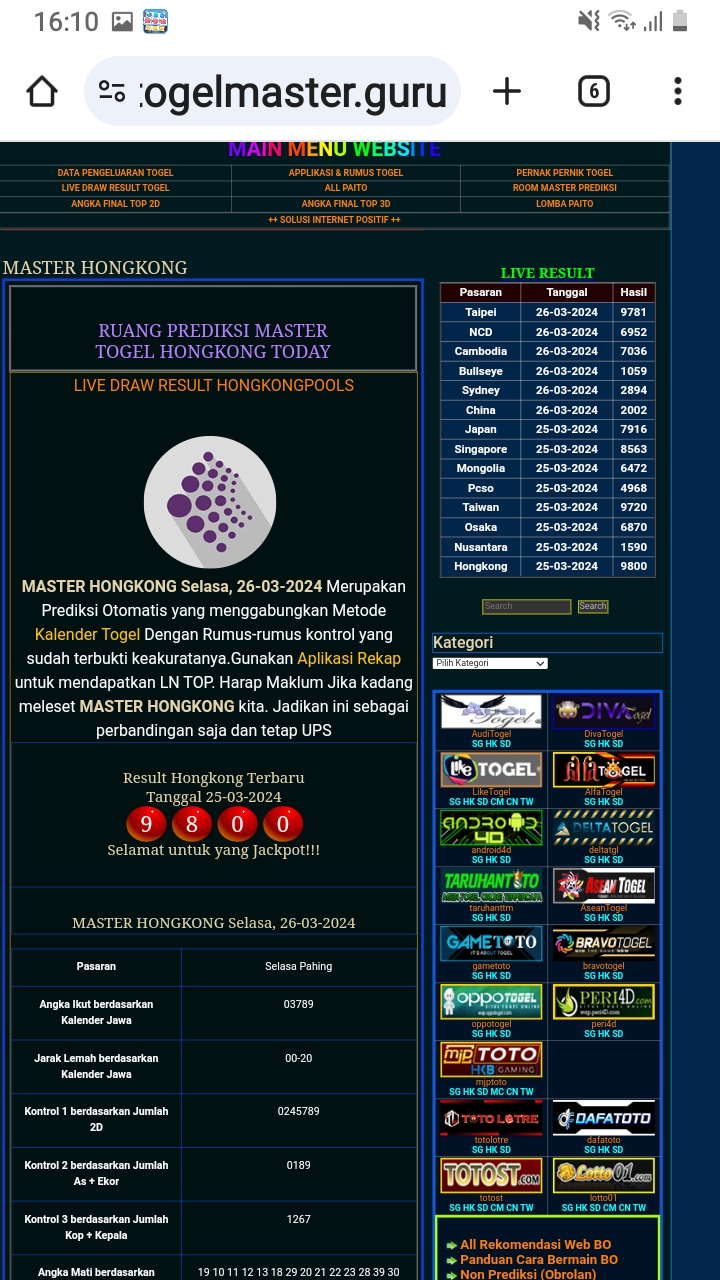 MASTER HONGKONG Senin, 02-03-2026 Merupakan Prediksi Otomatis yang menggabungkan Metode Kalender Togel Dengan Rumus-rumus kontrol yang sudah terbukti keakuratanya.Gunakan Aplikasi Rekap untuk mendapatkan LN TOP. Harap Maklum Jika kadang meleset MASTER HONGKONG kita. Jadikan ini sebagai perbandingan saja dan tetap UPS