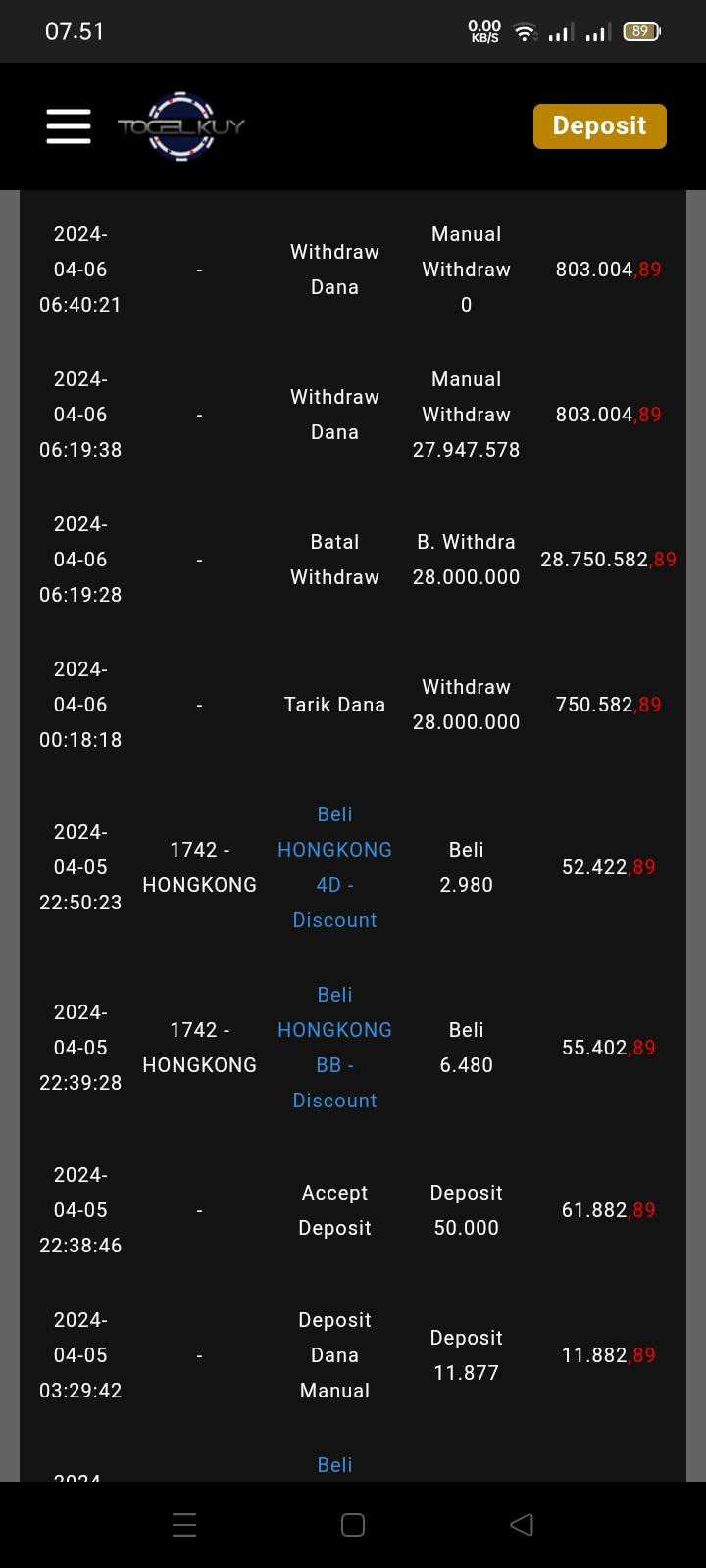| TABEL DATA HK VERSI 4D TAHUN 2004 HINGGA SEKARANG |