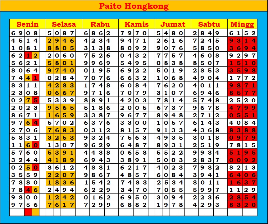 MASTER HONGKONG Senin, 02-03-2026 Merupakan Prediksi Otomatis yang menggabungkan Metode Kalender Togel Dengan Rumus-rumus kontrol yang sudah terbukti keakuratanya.Gunakan Aplikasi Rekap untuk mendapatkan LN TOP. Harap Maklum Jika kadang meleset MASTER HONGKONG kita. Jadikan ini sebagai perbandingan saja dan tetap UPS