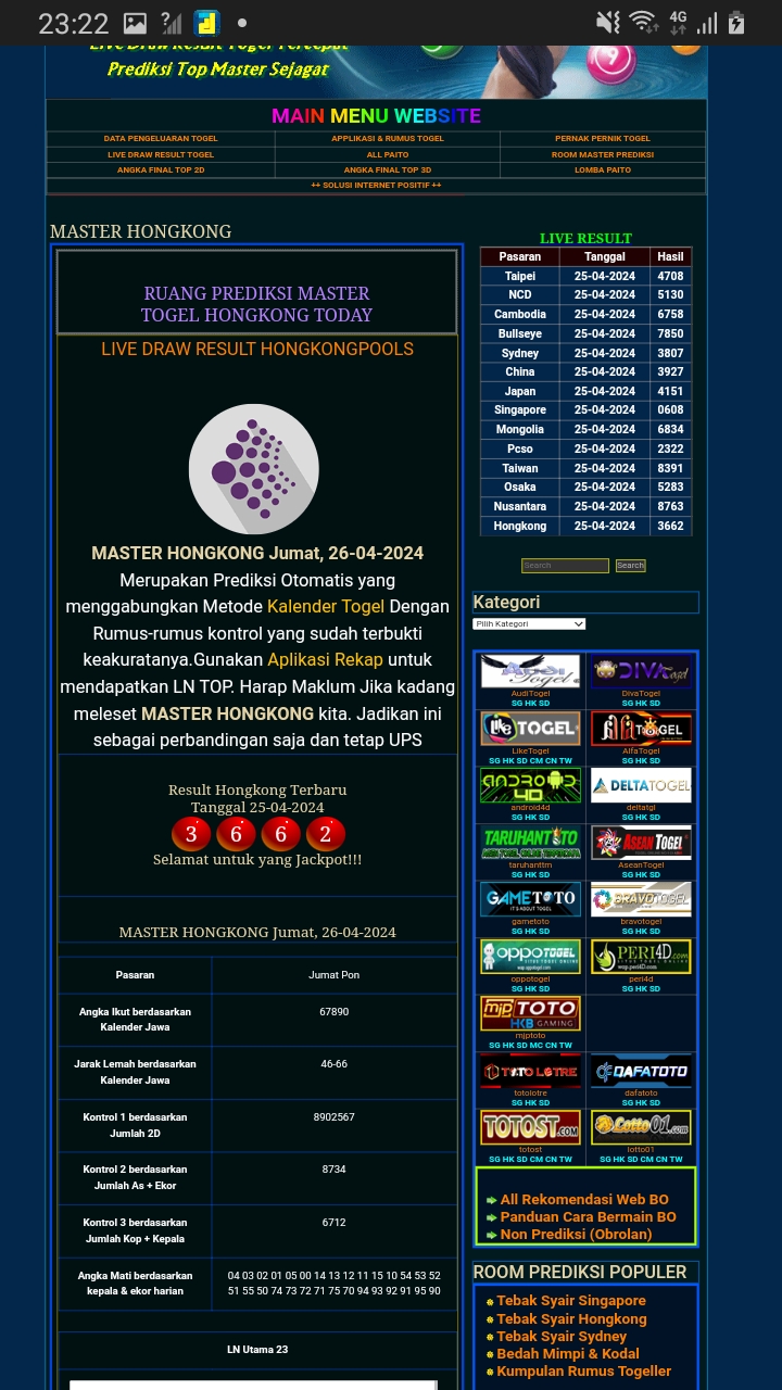 MASTER HONGKONG Senin, 02-03-2026 Merupakan Prediksi Otomatis yang menggabungkan Metode Kalender Togel Dengan Rumus-rumus kontrol yang sudah terbukti keakuratanya.Gunakan Aplikasi Rekap untuk mendapatkan LN TOP. Harap Maklum Jika kadang meleset MASTER HONGKONG kita. Jadikan ini sebagai perbandingan saja dan tetap UPS