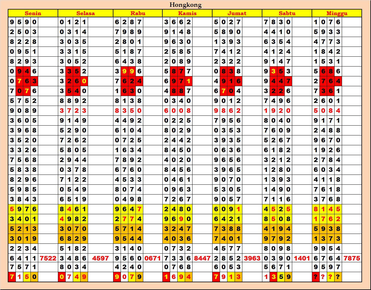 MASTER HONGKONG Jumat, 27-02-2026 Merupakan Prediksi Otomatis yang menggabungkan Metode Kalender Togel Dengan Rumus-rumus kontrol yang sudah terbukti keakuratanya.Gunakan Aplikasi Rekap untuk mendapatkan LN TOP. Harap Maklum Jika kadang meleset MASTER HONGKONG kita. Jadikan ini sebagai perbandingan saja dan tetap UPS