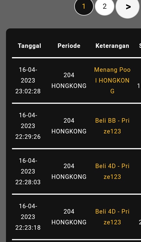 | TABEL DATA HK VERSI 4D TAHUN 2004 HINGGA SEKARANG |