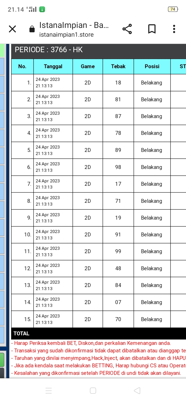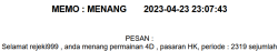semua postingan komentar SARA, politik, saling menghujat serta saling merendahkan antara prediktor satu dengan yang lainnya jika kami lagi OL mohon maaf langsung kami hapus dan jika telah diperingatkan masih mengulang kami lock datanya