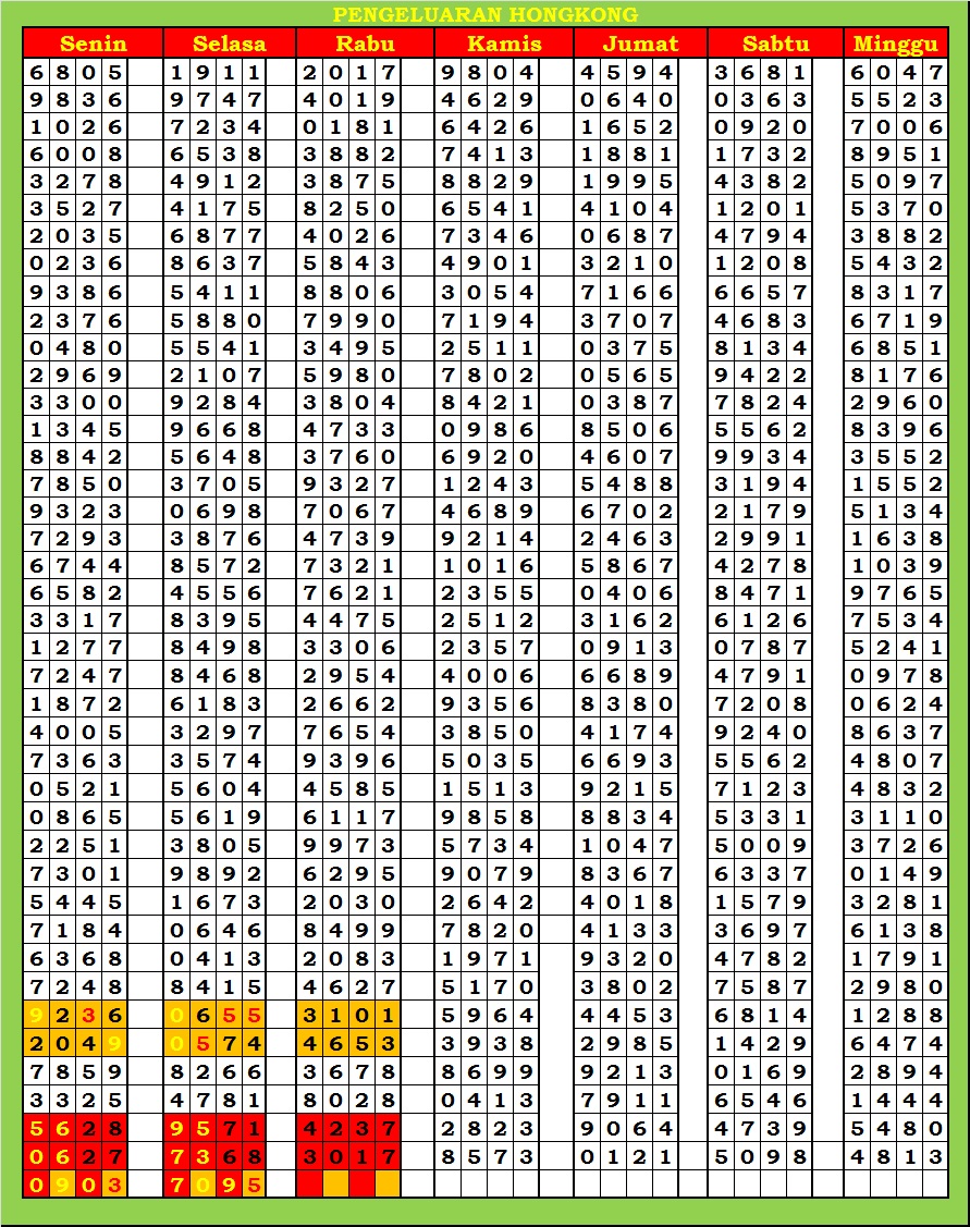 | TABEL DATA HKG VERSI 6D TAHUN 2010 HINGGA SEKARANG |