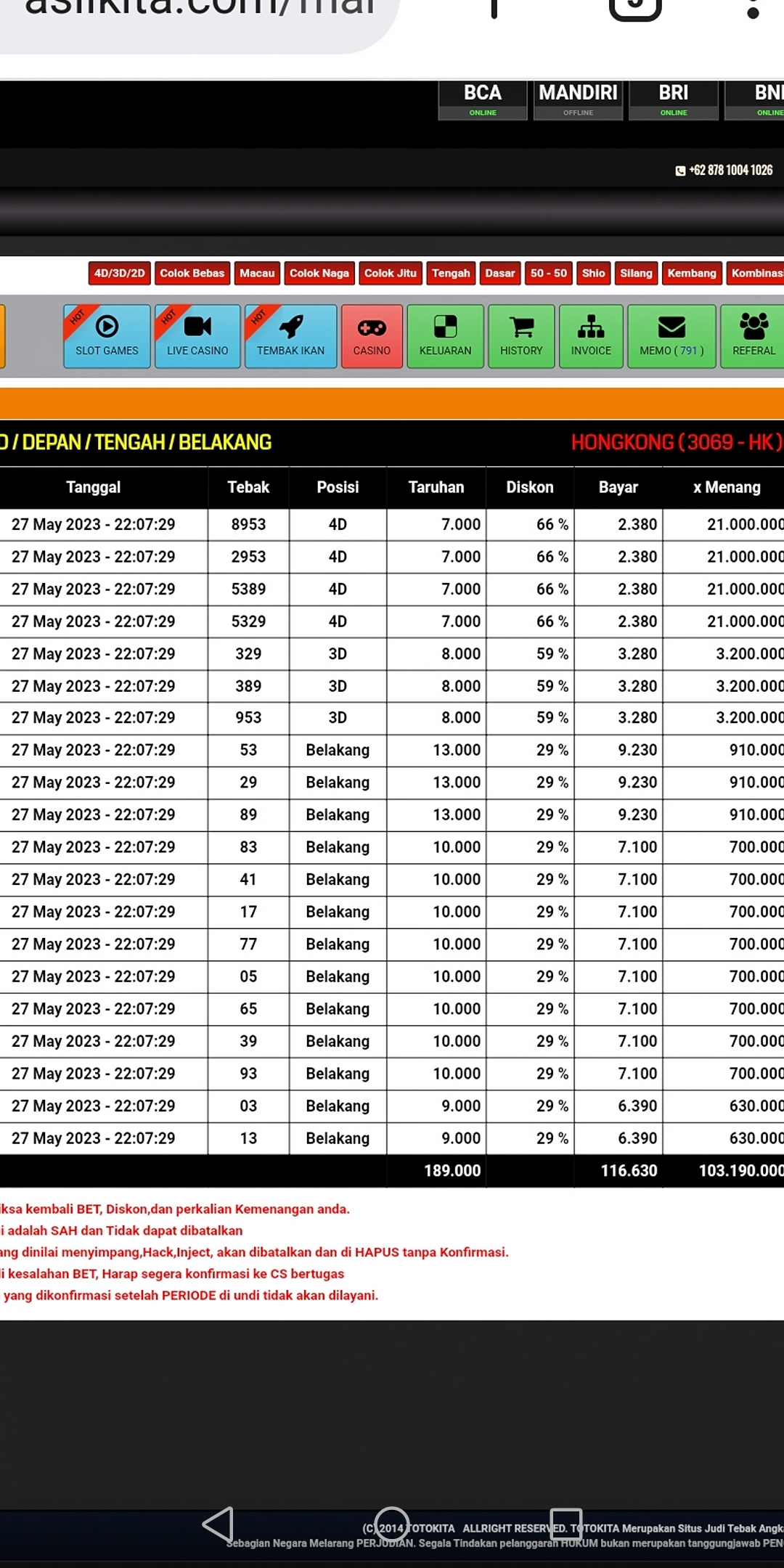 semua postingan komentar SARA, politik, saling menghujat serta saling merendahkan antara prediktor satu dengan yang lainnya jika kami lagi OL mohon maaf langsung kami hapus dan jika telah diperingatkan masih mengulang kami lock datanya