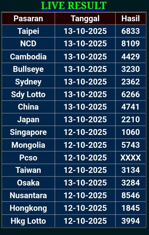 Prediksi Ini Berubah secara otomatis sesuai hari dan result pasaran masing-masing. Untuk melihat prediksi sebelumnya klik tombol nomor hitam diatas