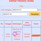 Angka Keras: 2d dpn/tgh/blkng: *25*
