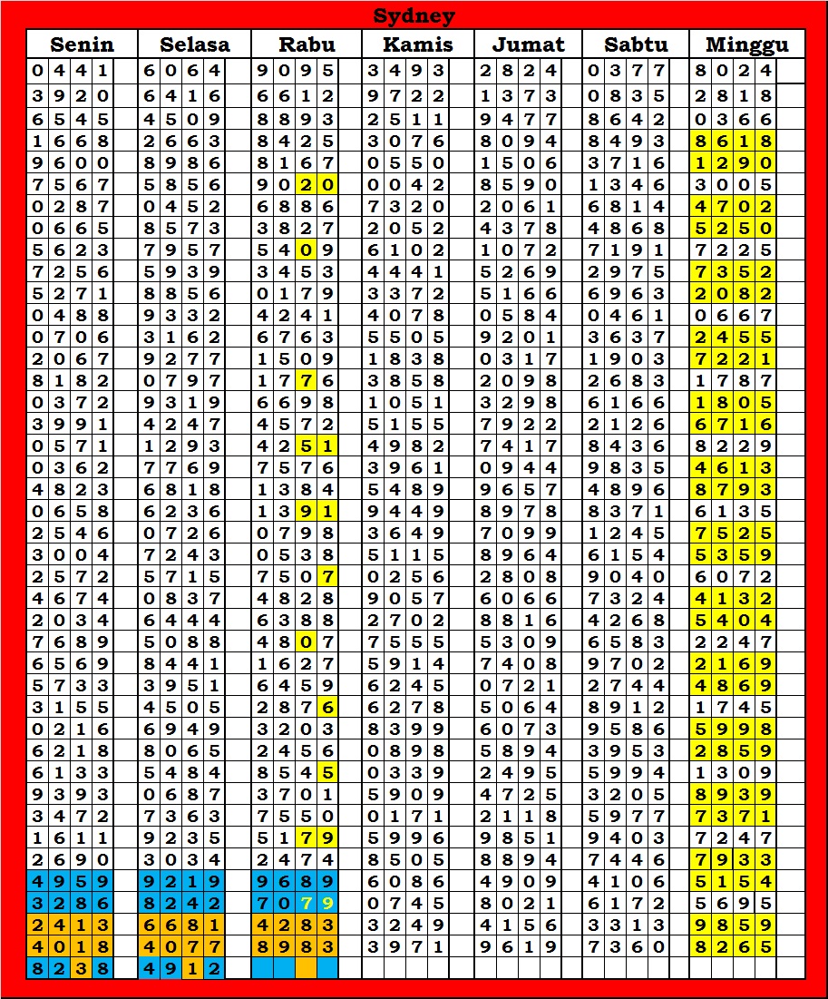 | TABEL DATA SYDNEY 6D VERSI HARIAN |