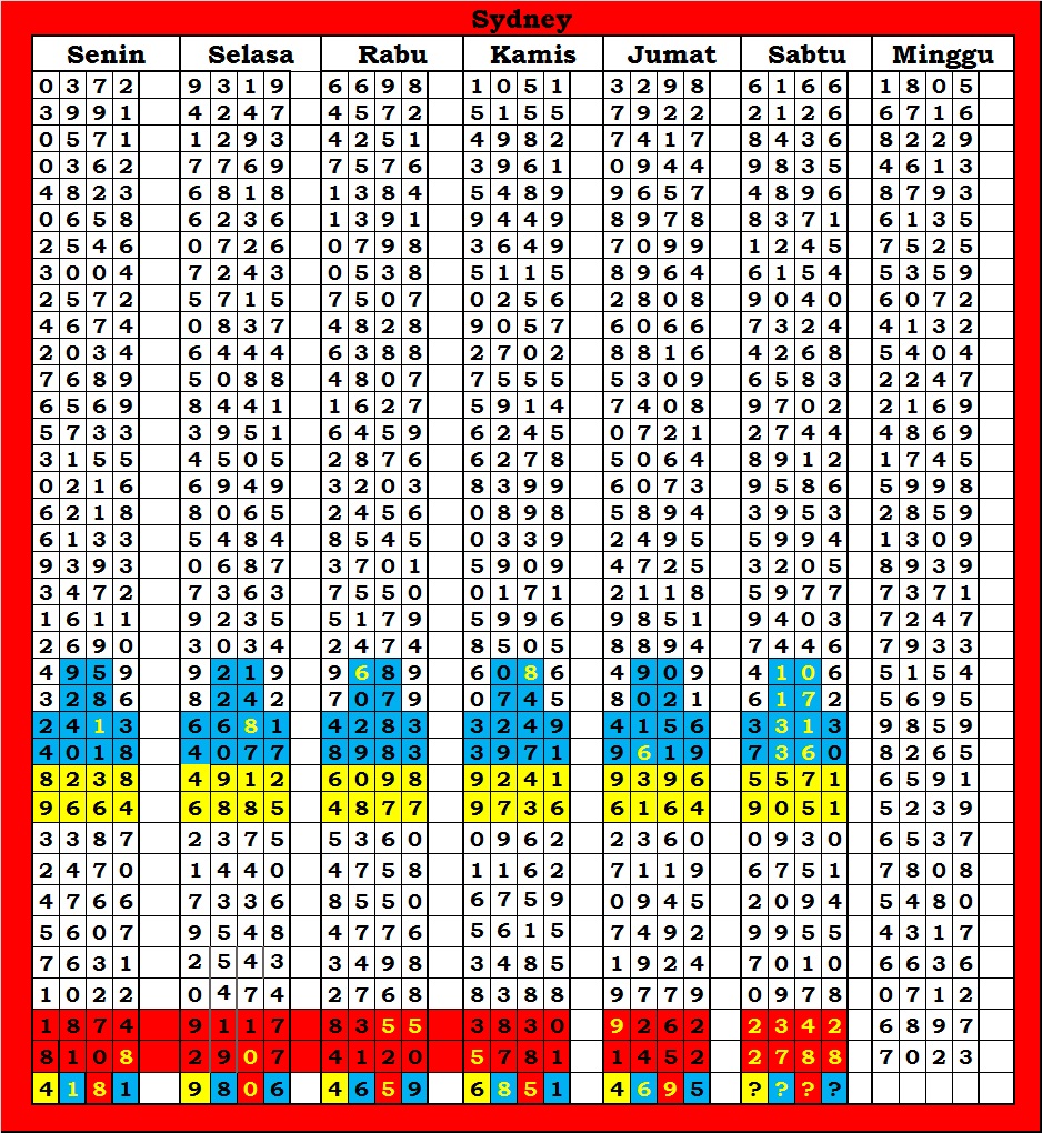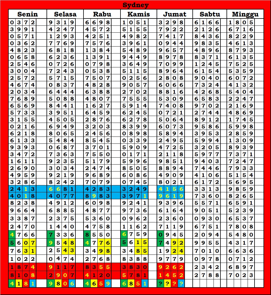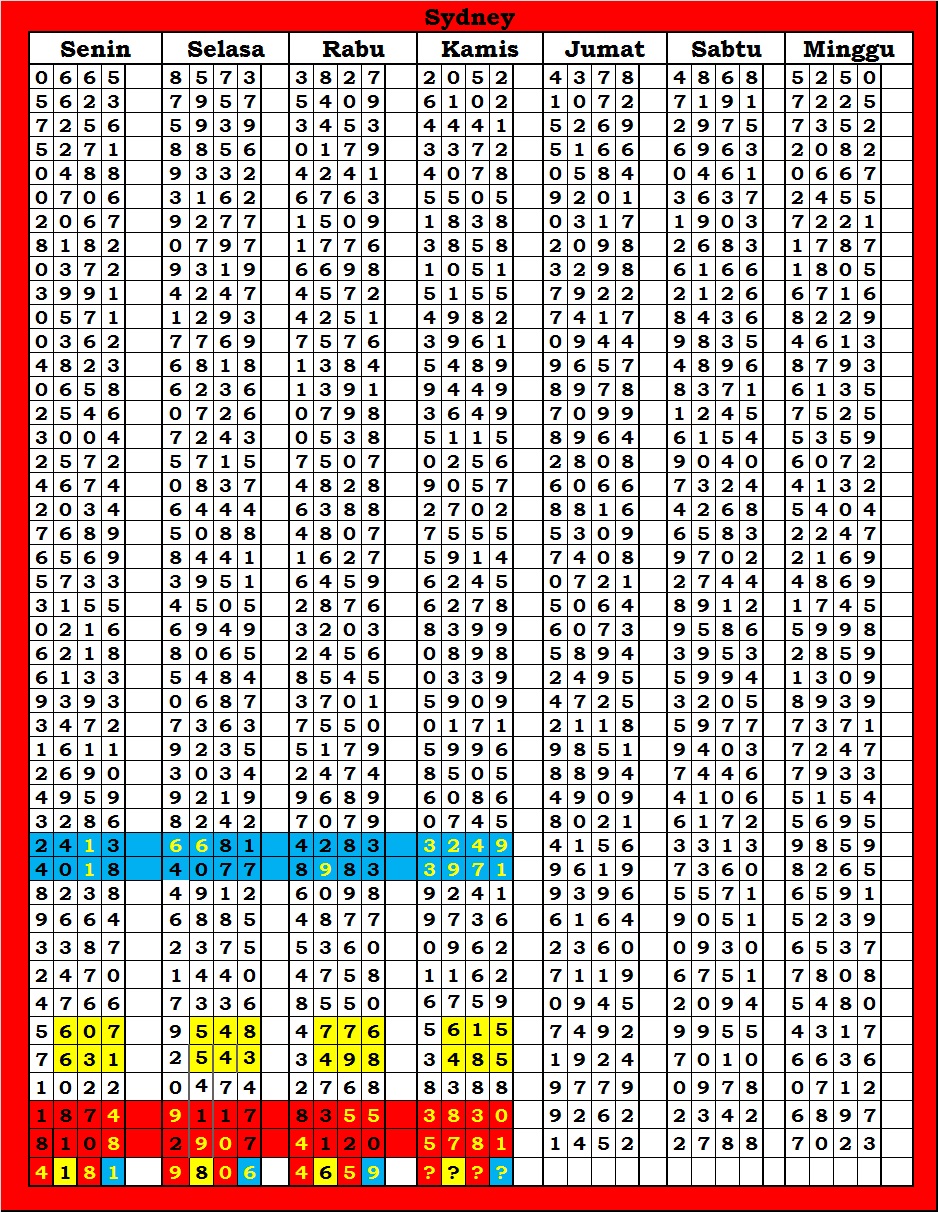 | TABEL DATA SYDNEY 6D VERSI HARIAN |