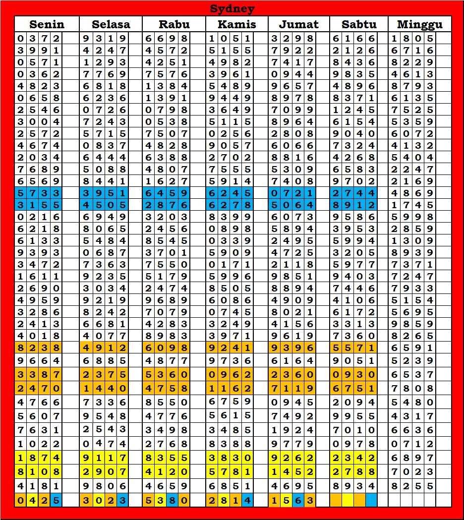 | TABEL DATA SYDNEY 6D VERSI HARIAN |