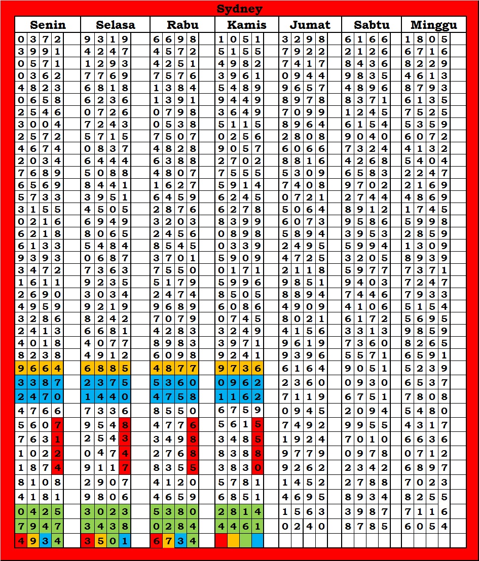 | TABEL DATA SYDNEY 6D VERSI HARIAN |