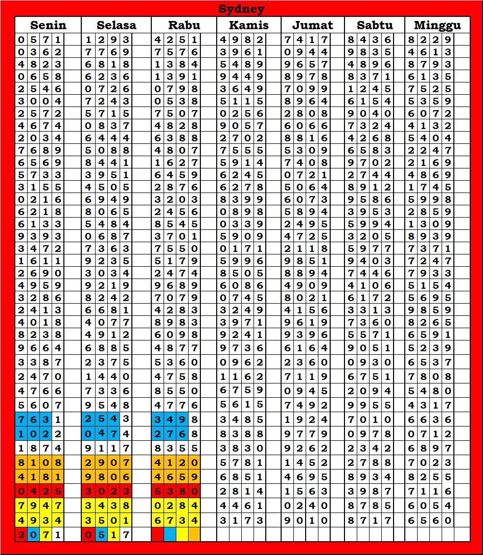 | TABEL DATA SYDNEY 6D VERSI HARIAN |