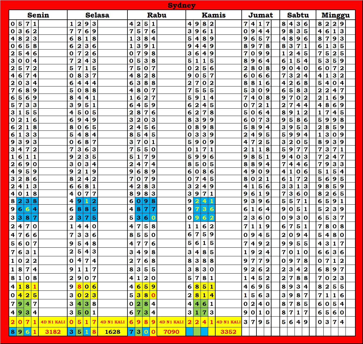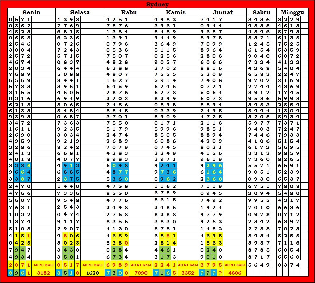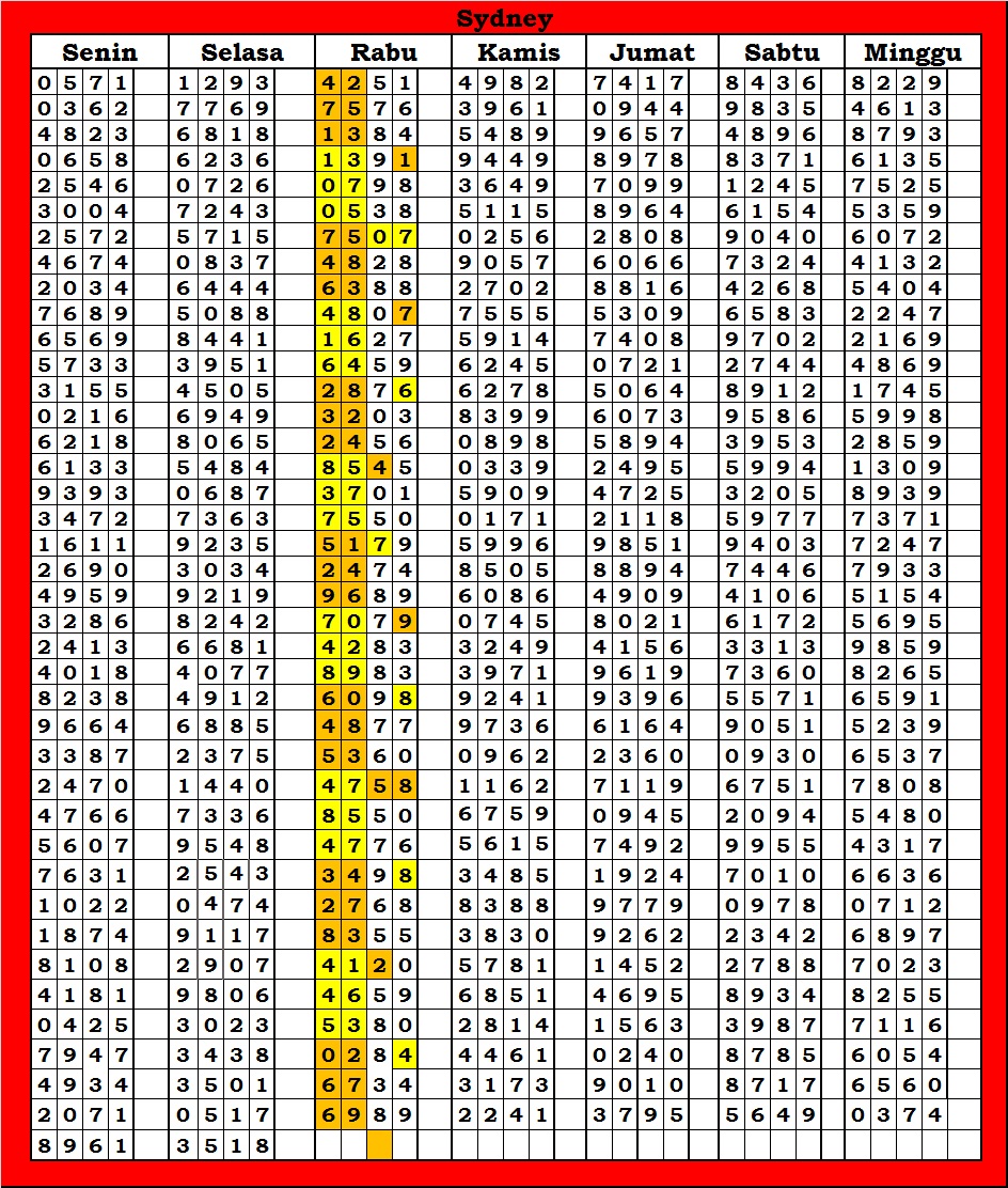 | TABEL DATA SYDNEY 6D VERSI HARIAN |