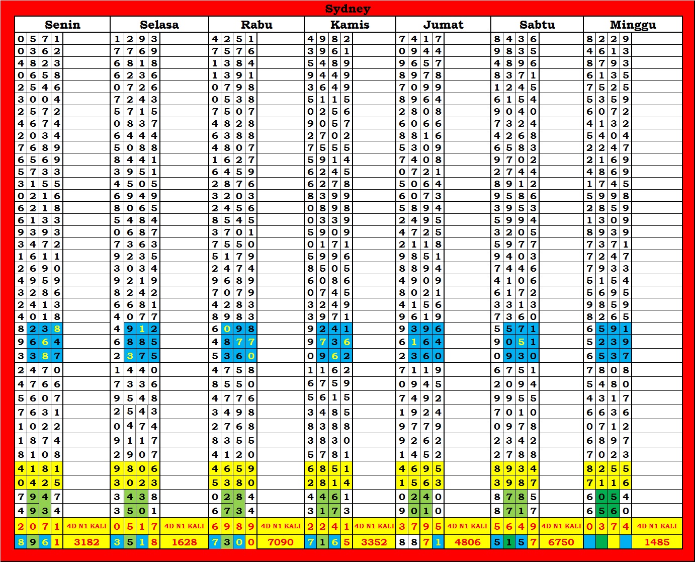 | TABEL DATA SYDNEY 6D VERSI HARIAN |