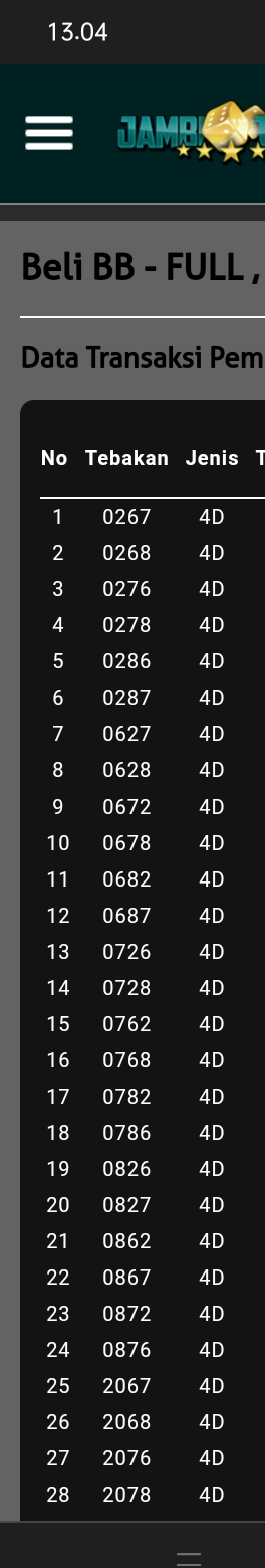 No. Game Tebakan Bet KEI Diskon Jumlah Bayar