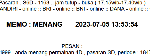 semua postingan komentar SARA, politik, saling menghujat serta saling merendahkan antara prediktor satu dengan yang lainnya jika kami lagi OL mohon maaf langsung kami hapus dan jika telah diperingatkan masih mengulang kami lock datanya