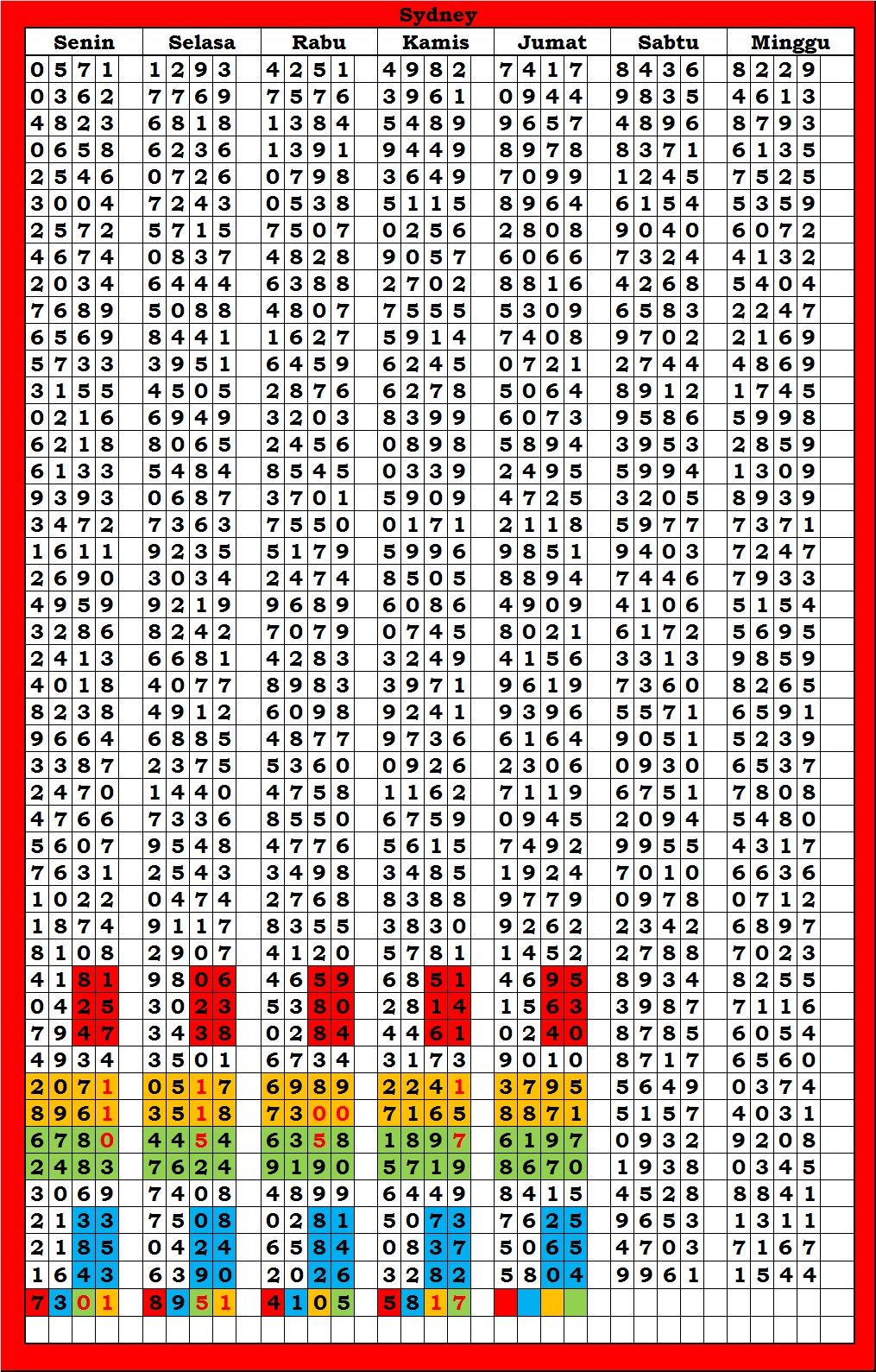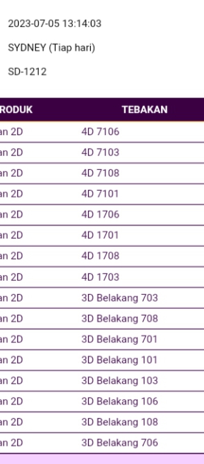 | TABEL DATA SYDNEY 6D VERSI HARIAN |