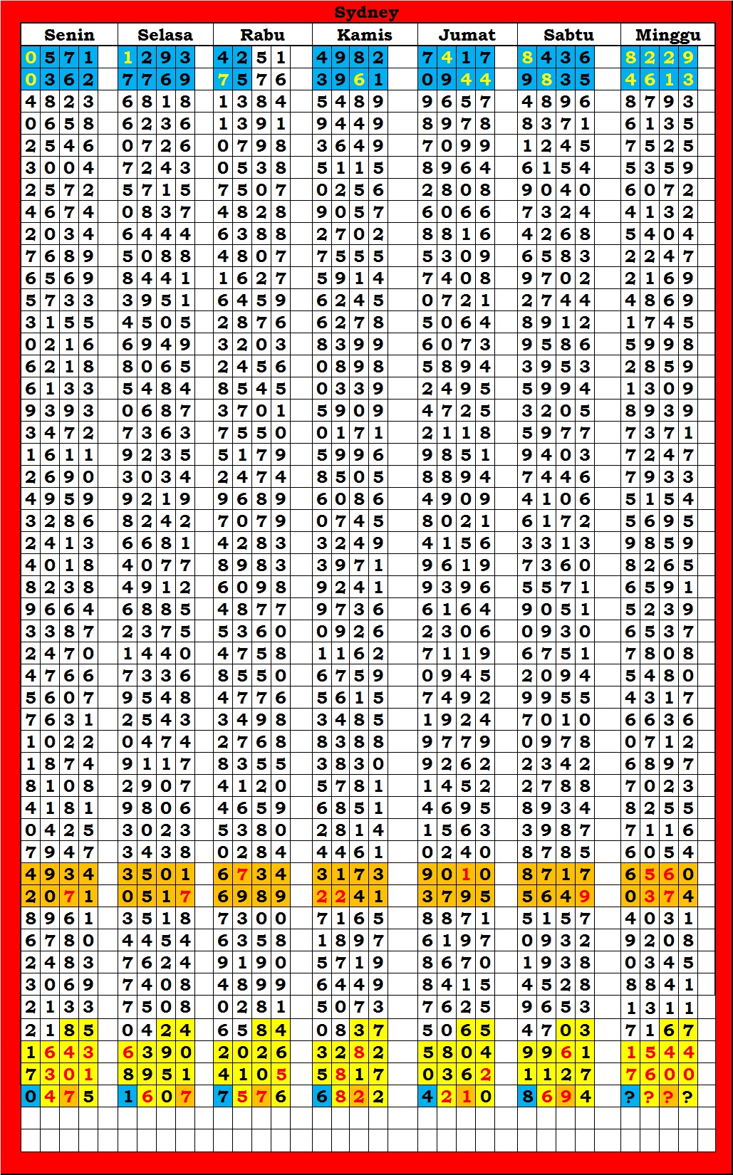 | TABEL DATA SYDNEY 6D VERSI HARIAN |
