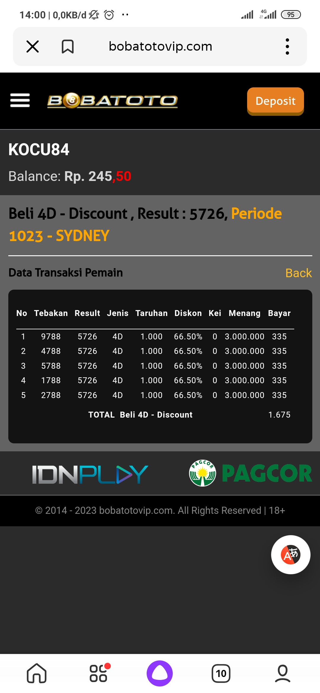 | PAITO BOLA MERAH SYDNEY 4D |