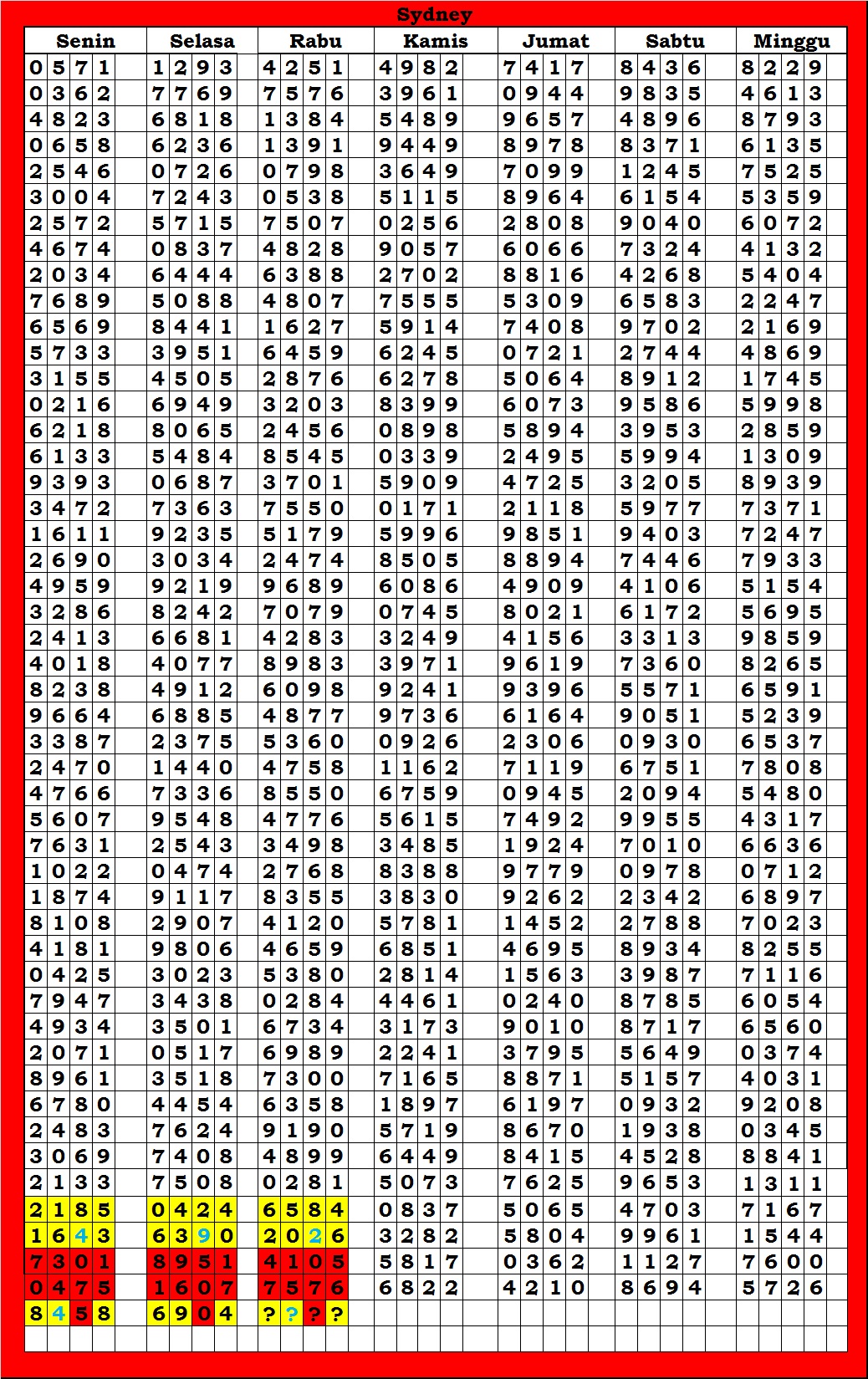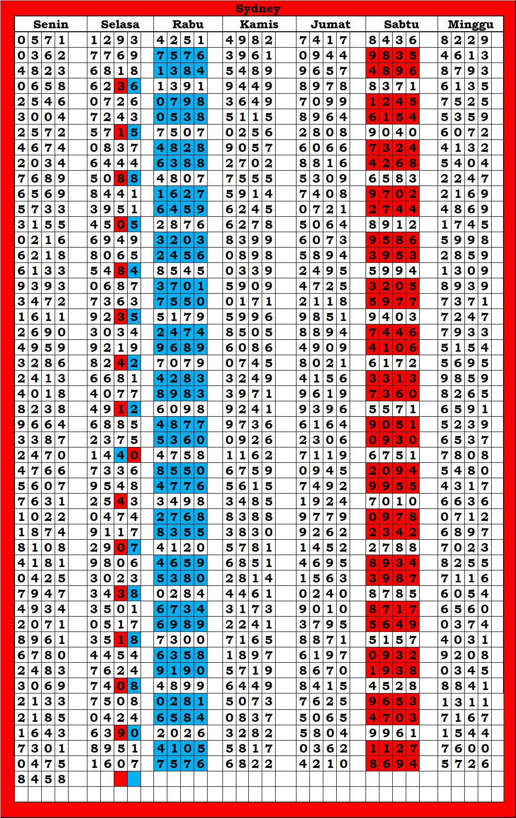 | TABEL DATA SYDNEY 6D VERSI HARIAN |