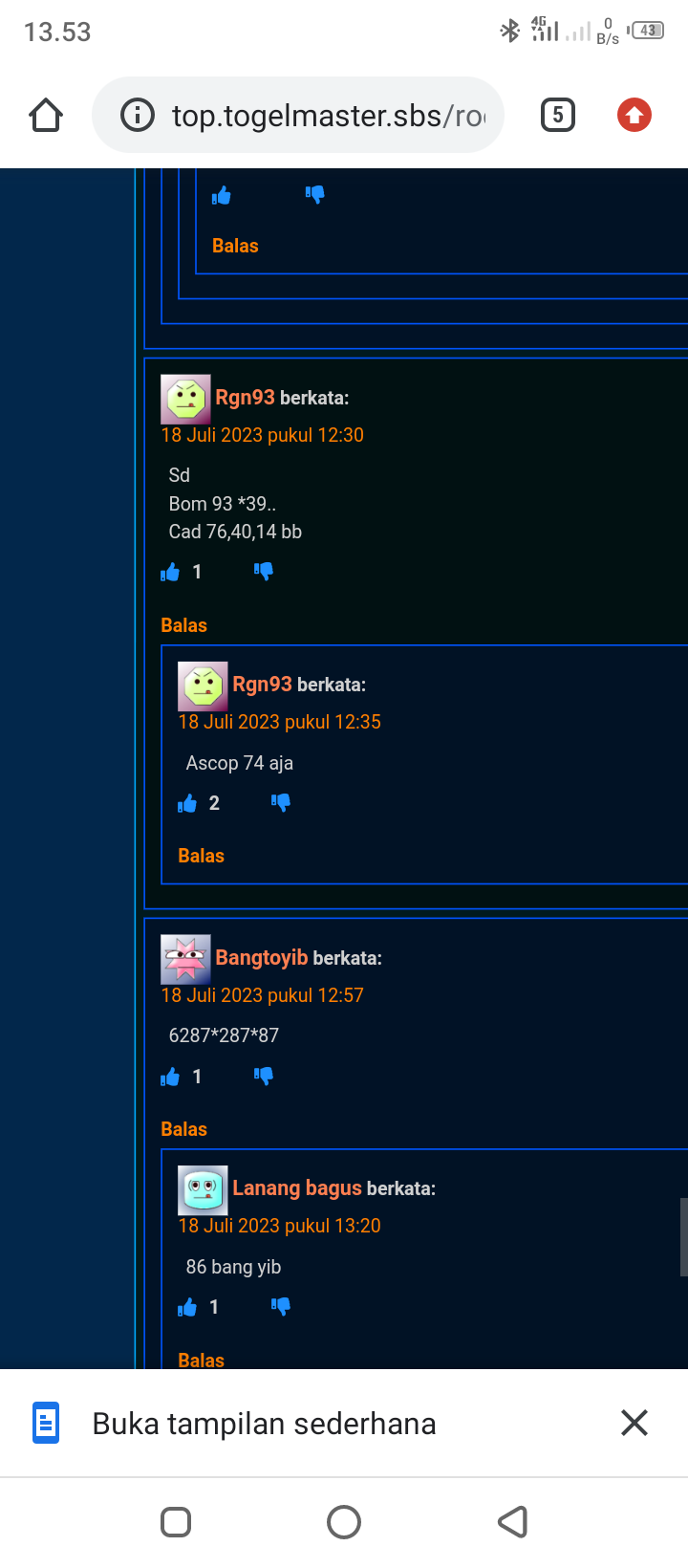 Bisa ga master prediksi nya yg simpel..angka tarung saja..tapi