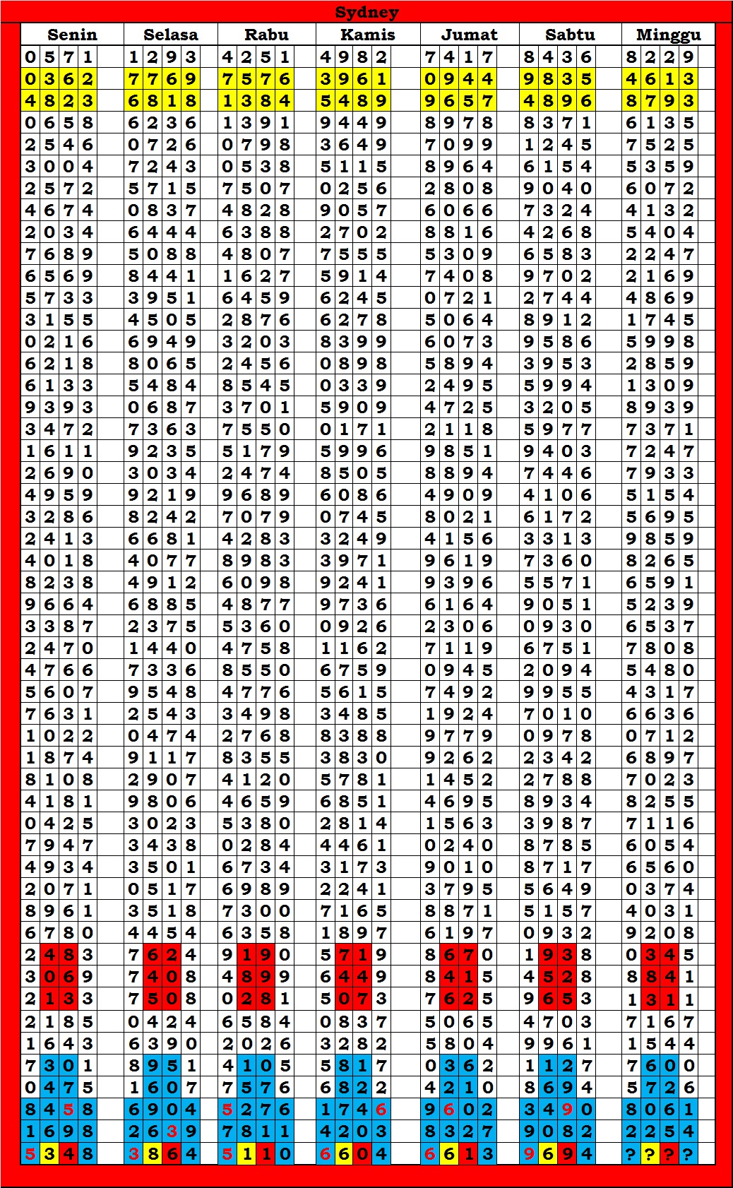 | TABEL DATA SYDNEY 6D VERSI HARIAN |