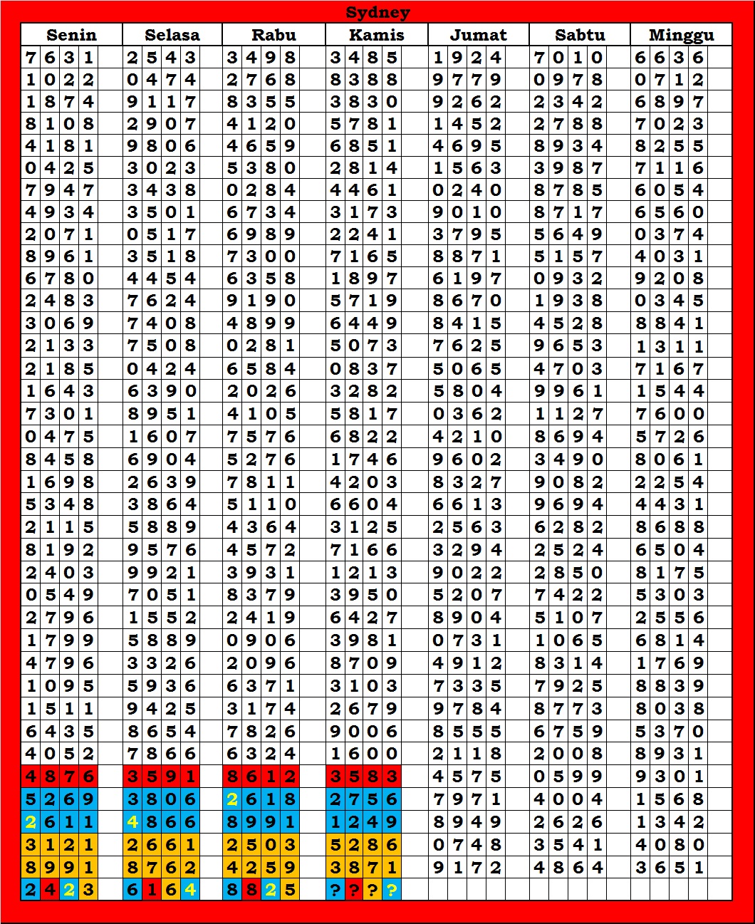 | TABEL DATA SYDNEY 6D VERSI HARIAN |