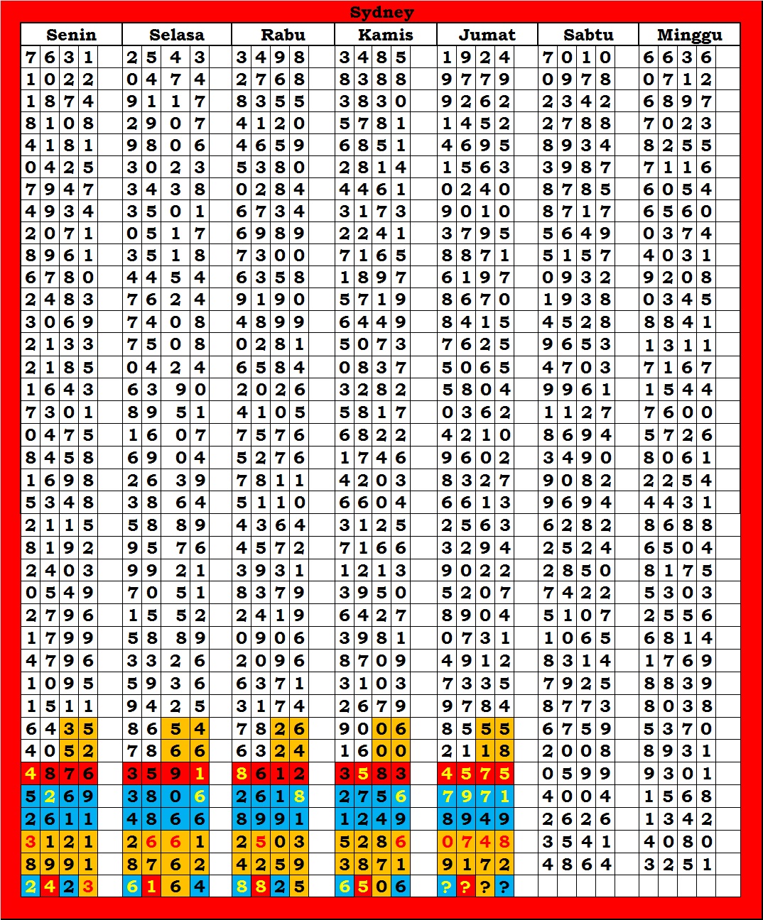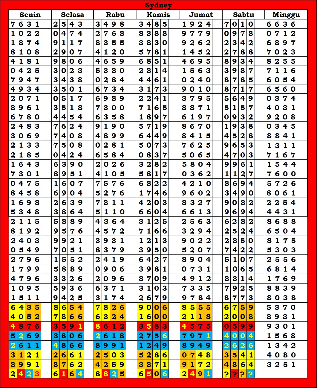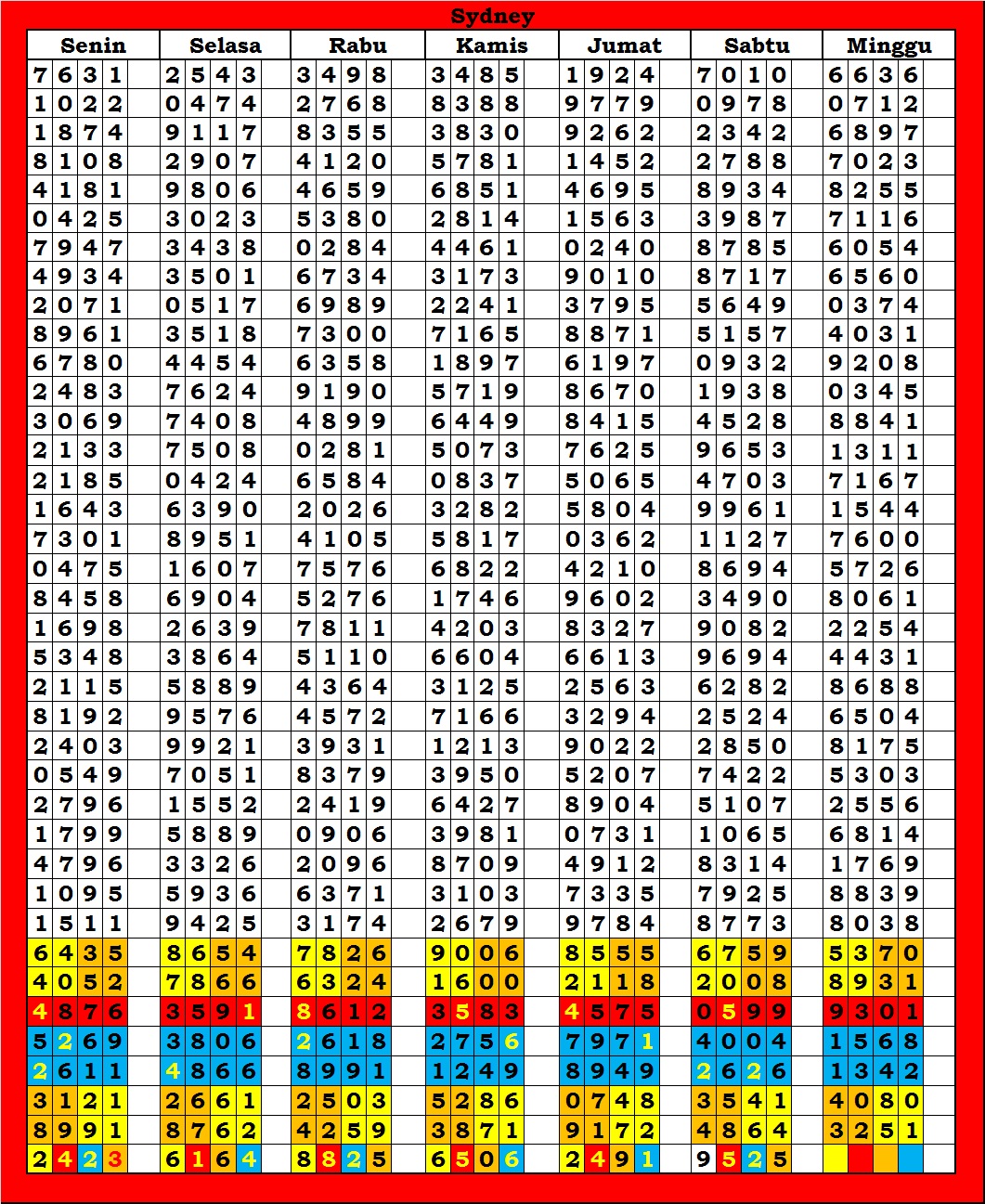 | TABEL DATA SYDNEY 6D VERSI HARIAN |
